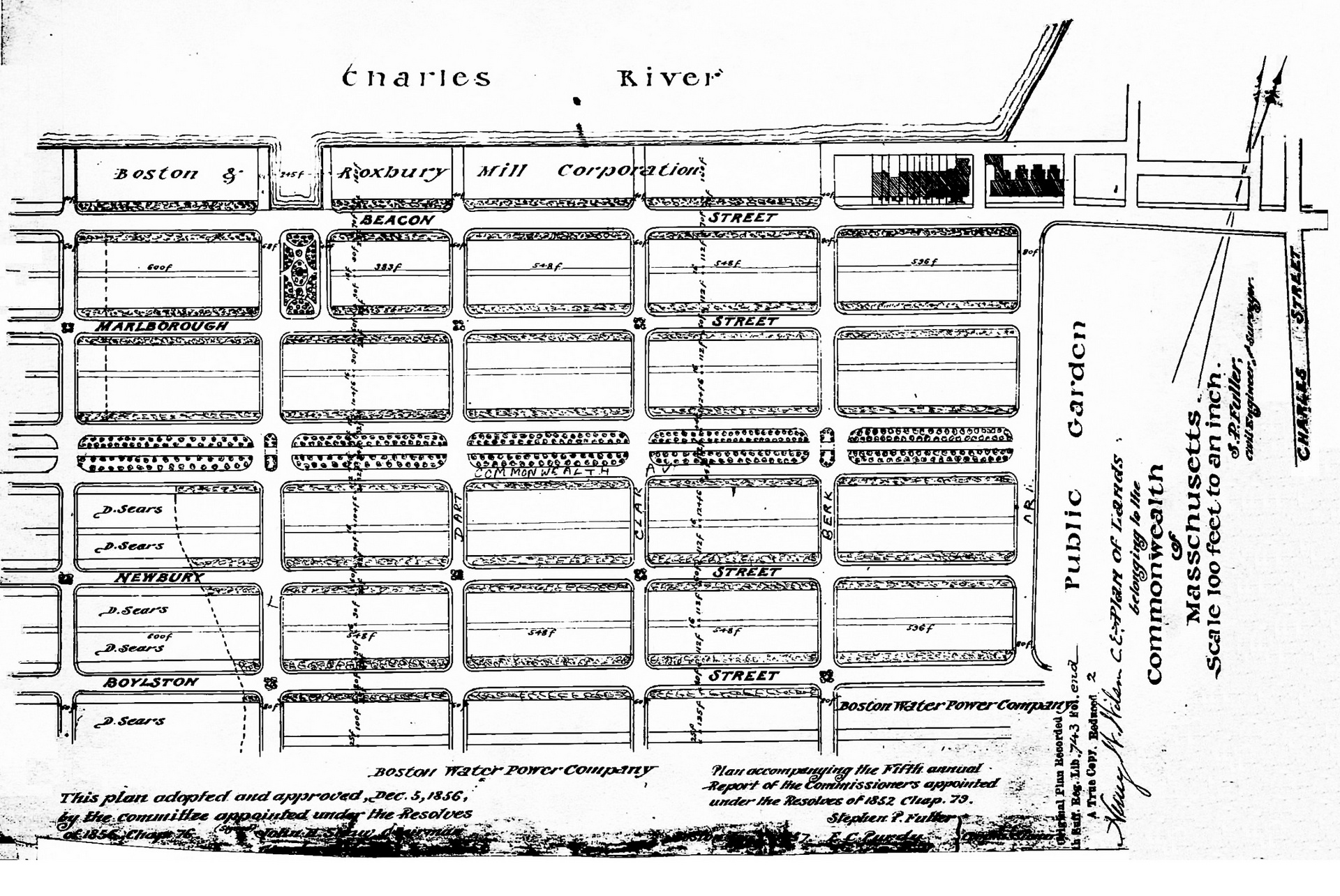 The earliest residents lost no time in transforming the terrain of Shawmut Peninsula. A cove to the north-east of Beacon Hill was almost enclosed by a small island positioned across its entrance. With a burgeoning population to be fed, the need for a mill was paramount. A company was formed in 1643 to dam the cove and build two corn mills within three years. A creek was also extended to connect the pond to the South Cove of the town. Tidal action provided the power to the mills which eventually also included a rum mill and a chocolate mill. The Mill Pond was active until 1804 when the Boston Mill Corporation bought the pond and began the task of filling it in with earth from Beacon Hill and Copps Hill. It took 21 years to finish and added 50 acres to the town. Charles Bulfinch was engaged to design the layout of the streets. As you step out onto Causeway Street leaving TD Garden, you are walking on the causeway that enclosed the Mill Pond, and if you perhaps walk down Canal Street to look for a bite to eat, you are reminded that a canal once connected the Mill Pond the South Cove.